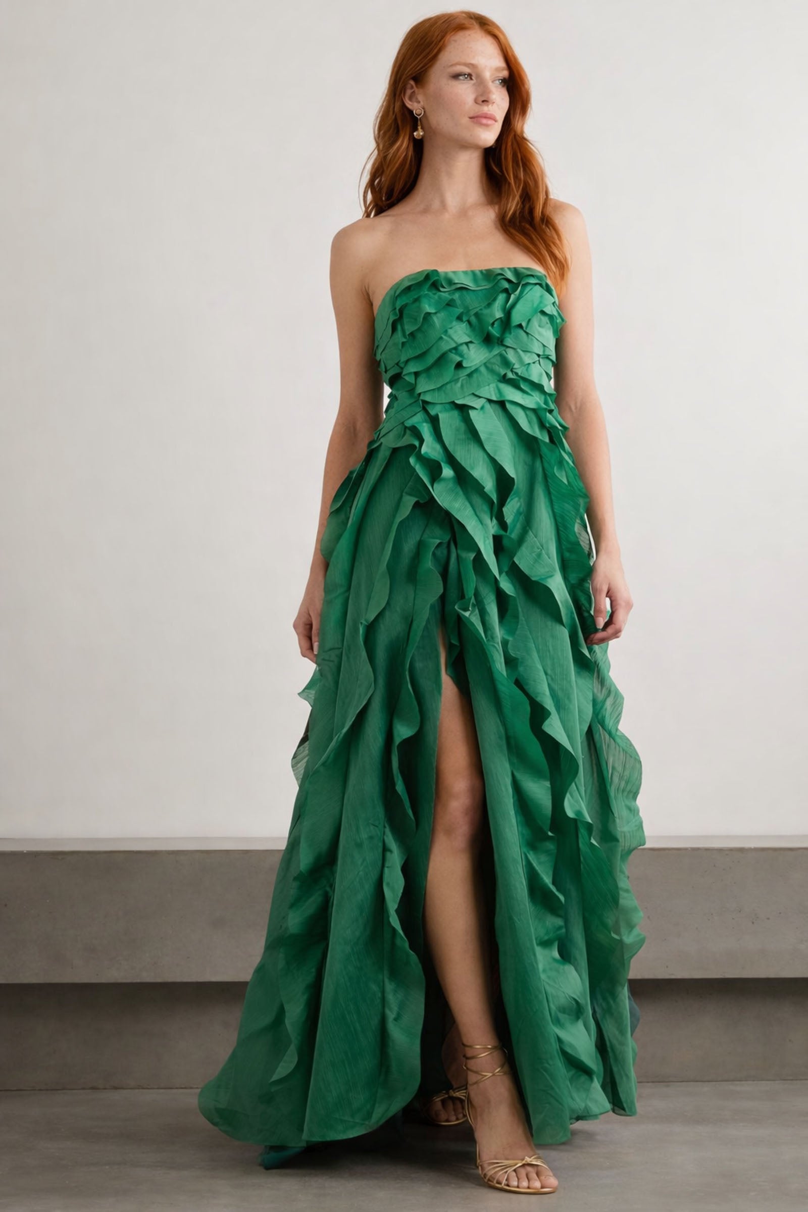 Meet the ‘Allairie’ gown - full of modern charm and flirty details! Made from soft faille, it twirls beautifully in cascading ruffled tiers, making every step feel extra special.
